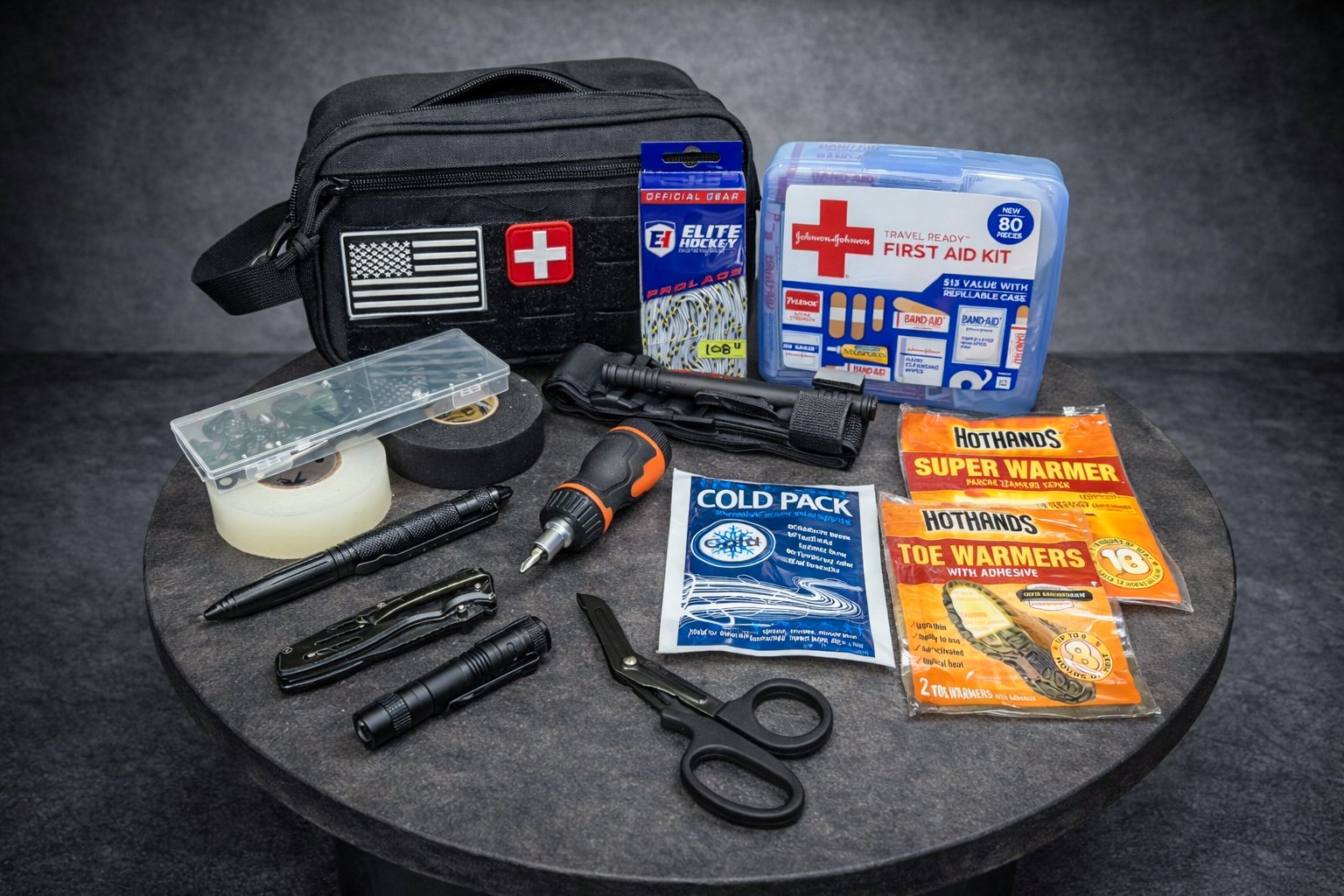 First Aid Kit - Nothing extreme. Just a solid travel-size kit with bandages, gauze, wipes, and the basics. It handles the small stuff so it doesn’t become big stuff.